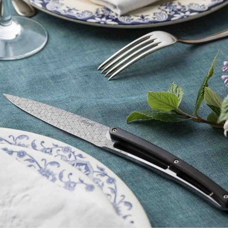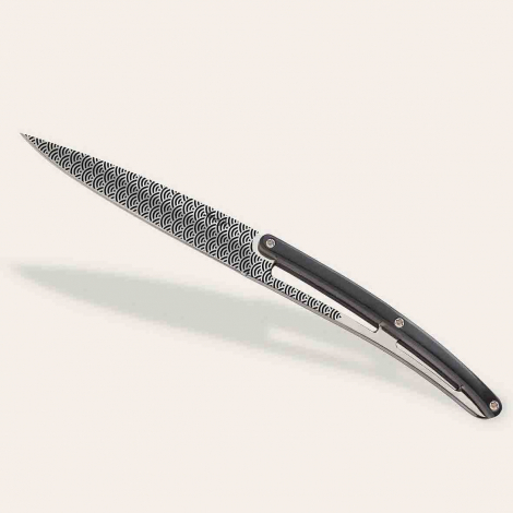 Le bois d’ébène qui orne le manche de ces couteaux Deejo est une véritable ode aux noirs profonds.