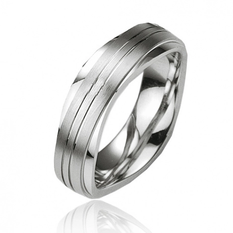 Alliance en argent 925/1000. La finition de l'alliance est brossée et polie sur les flancs. . L'alliance a une largeur de 6.5 mm. L'épaisseur de l'alliance est de 2.3 mm.