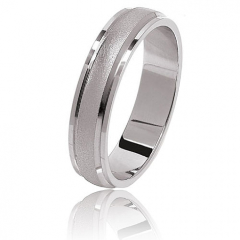 Large de 4 mm , cette alliance masculine a l'extérieur bombé satiné et un intérieur plat.