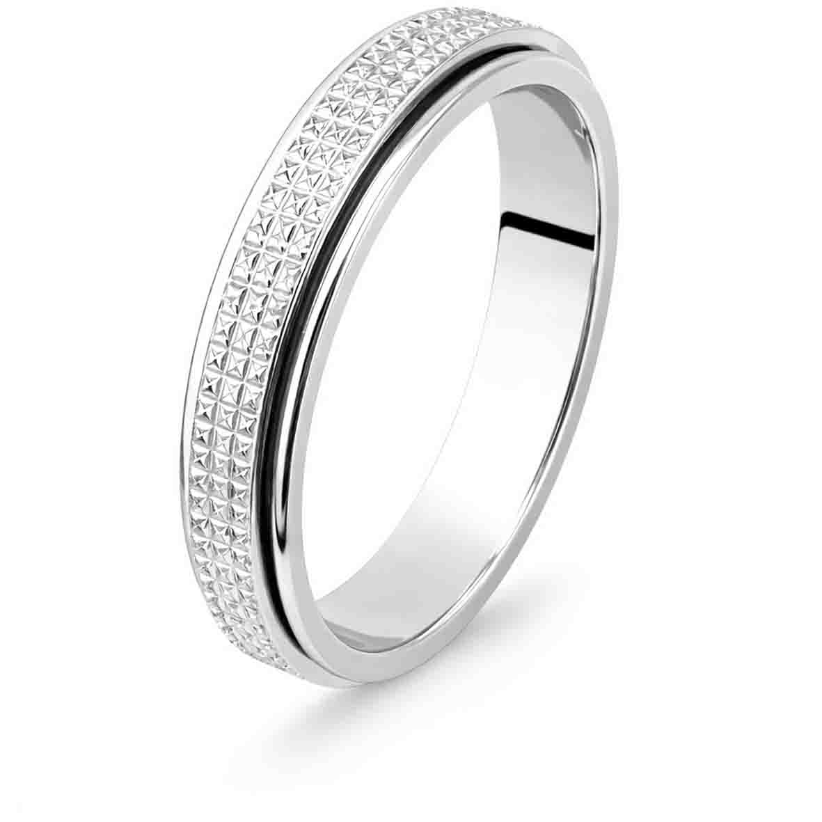 Son extérieur guillochés crée une texture délicate qui capte la lumière avec grâce, tandis que l'intérieur plat épousera parfaitement votre doigt pour un confort optimal au quotidien.