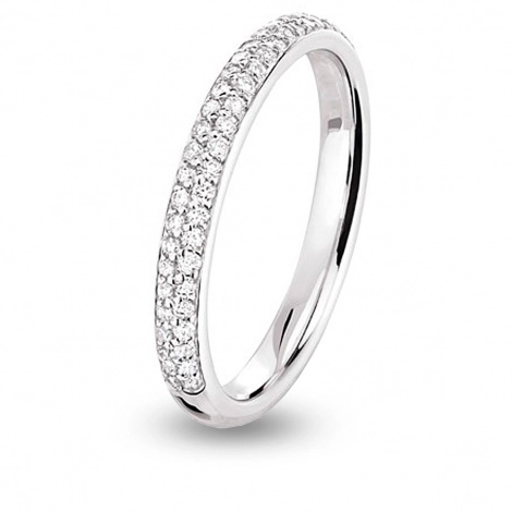 Alliance Diamants platine femme sertie de 54 diamants de 0.005 ct sur un corps de forme jonc parisien. Deux rangées de 27 diamants sont sertis grains festonnés sur un demi tour La largeur de l'alliance est de 2,5 mm