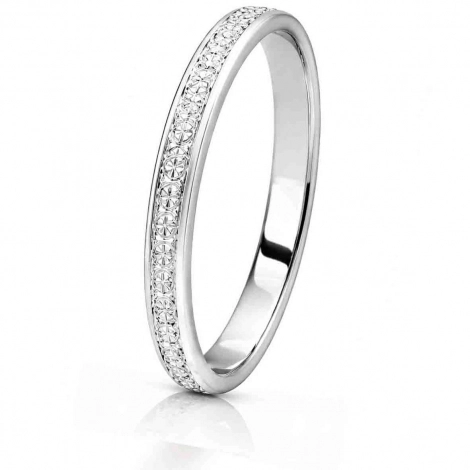 Cette alliance présente une largeur de 2,5 mm, offrant un équilibre délicat entre présence élégante et légèreté au doigt pour un confort optimal au quotidien.