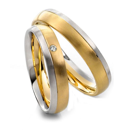 L'alliance se compose d'une bande en or jaune et la seconde plus fine en or blanc.