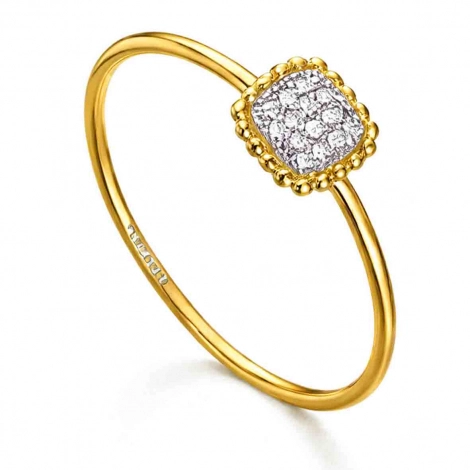 Bague carrée en or perlée et diamants – Lecarré Alanna