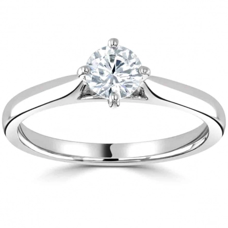 Cette bague de fiançailles pour femme est disponible avec différents poids de diamant, de 0.25 ct à 1.5 ct, permettant de choisir l’éclat qui correspond à votre histoire.