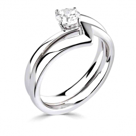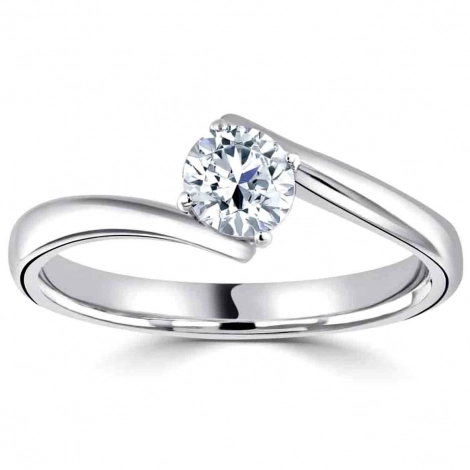 Son design délicatement torsadé apporte une touche moderne au classique solitaire, sublimant ainsi la beauté intemporelle du diamant rond blanc G-VS.