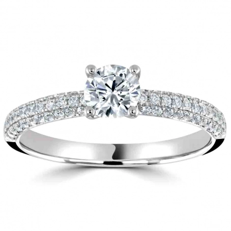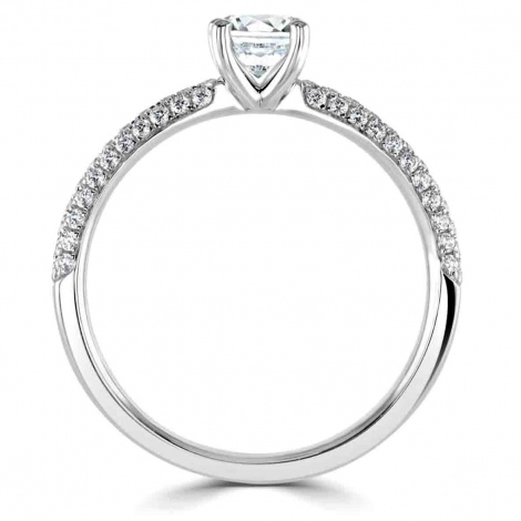 Cette technique consiste à sertir de petits diamants sur l'anneau, créant un tapis scintillant qui entoure le diamant central.