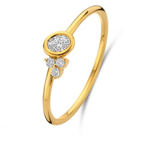 Cette bague est ornée d’un diamant taille ovale de 0,10 ct et de 3 diamants taille brillant totalisant 0,04 ct, tous naturels et sélectionnés pour leur qualité exceptionnelle (G-VS).