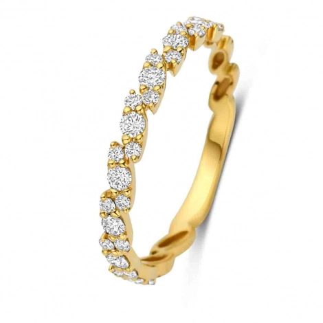 Cette bague en diamants et or jaune incarne un luxe discret, idéal pour sublimer la main avec grâce.
