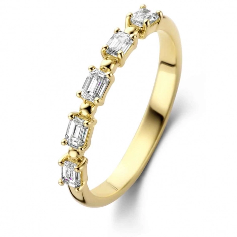 La bague est sertie de 0,51 carat de diamants naturels taille émeraude.
