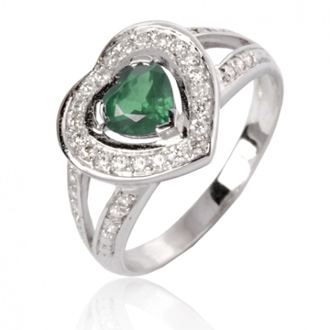 Cette bague en or blanc est ornée d’une émeraude taillée en forme de cœur, symbole d’amour et de passion, pour un poids de 0,70 carat.