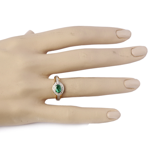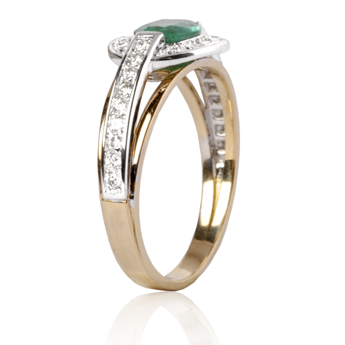 Bague de fiançailles Émeraude ovale et diamants – Or 18 carats