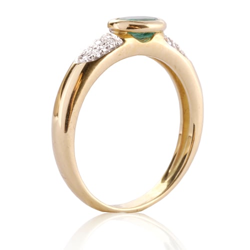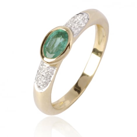 Le corps de la bague émeraude est sertie de diamants des deux côtés de l'émeraude. Le poids des diamants est de 0.12 carat. La couleur des diamants est G (extra blanc).