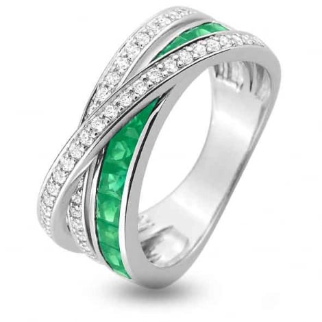 Bague saphir en or blanc de 18 carats La bague est serti de 1.25 ct de saphirs taille princesse d'une dimension de 2.3 mm Deux autres anneaux sont sertis de 0.35 ct de diamants