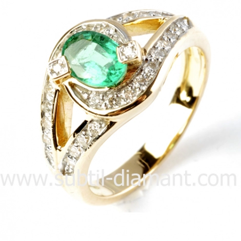 Découvrez cette somptueuse bague émeraude et diamants en or 18 carats, un bijou d’exception au design élégant et harmonieux.