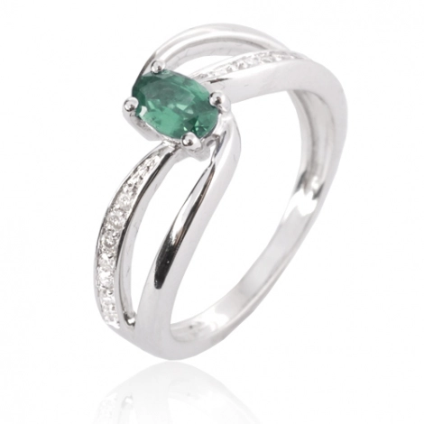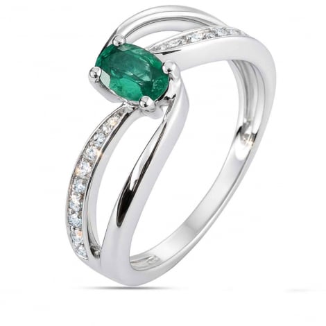 Au centre, une émeraude ovale de 0,50 carat capte la lumière avec intensité et éclat.