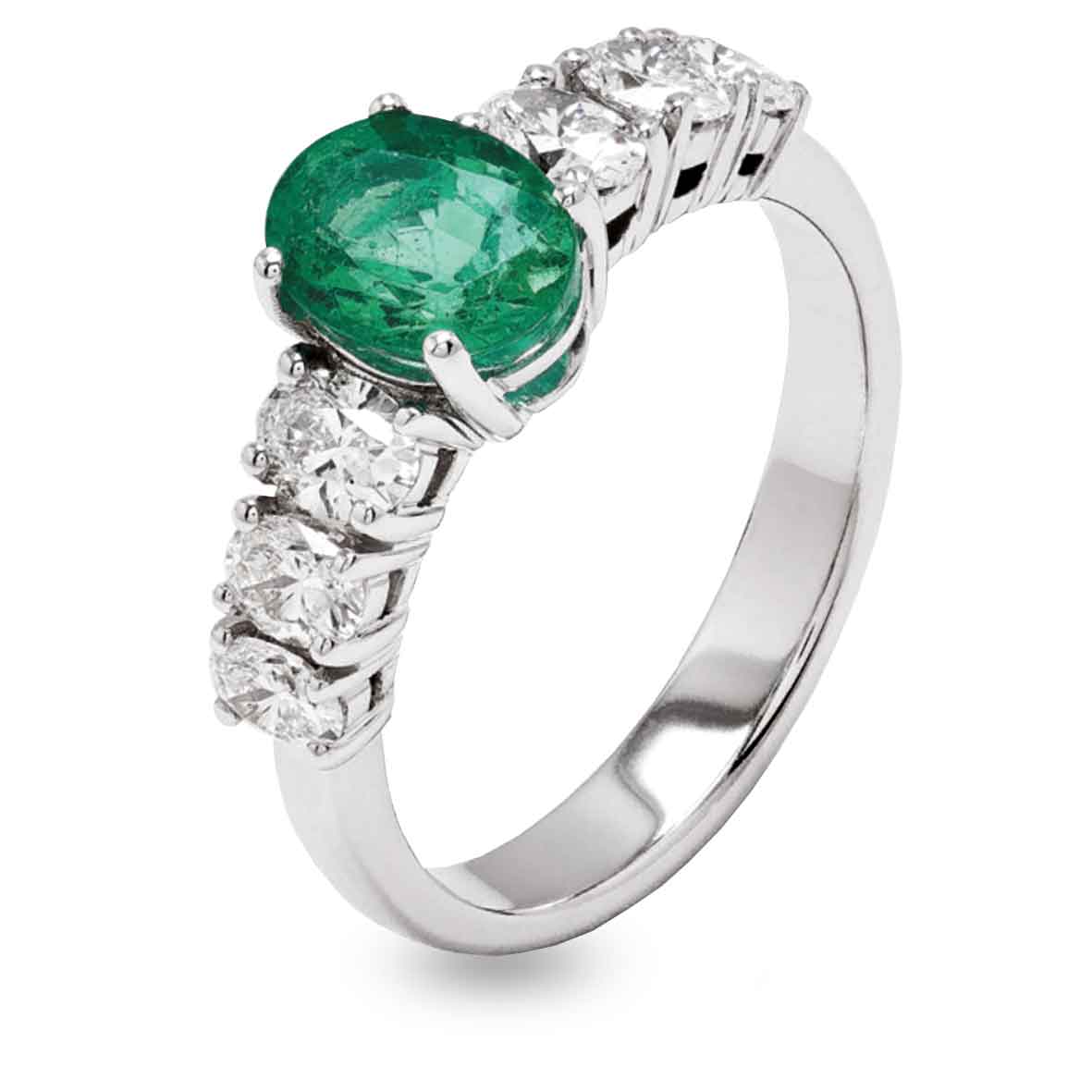 Bague Emeraude et Diamants en Or Blanc Elise - AN3639B/SME