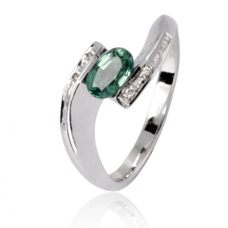 L’émeraude, de forme ovale et pesant 0,50 carat, est mise en valeur par un serti demi-clos qui protège la pierre tout en laissant pénétrer la lumière, révélant sa couleur éclatante et naturelle.