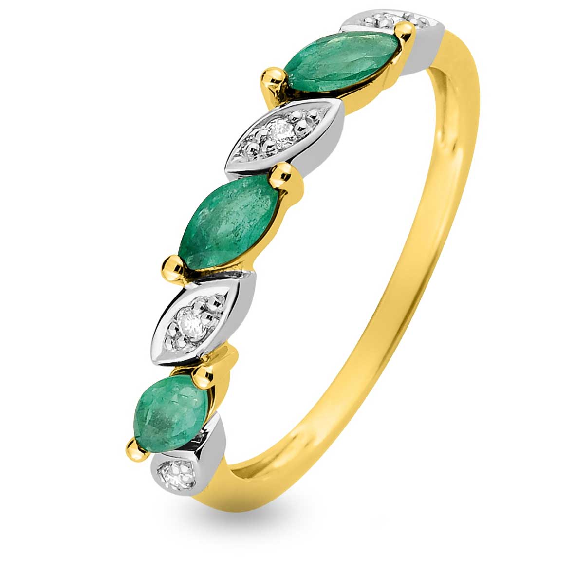 Bague Emeraude et Diamants en Or Jaune Corail - MBA10BEB4