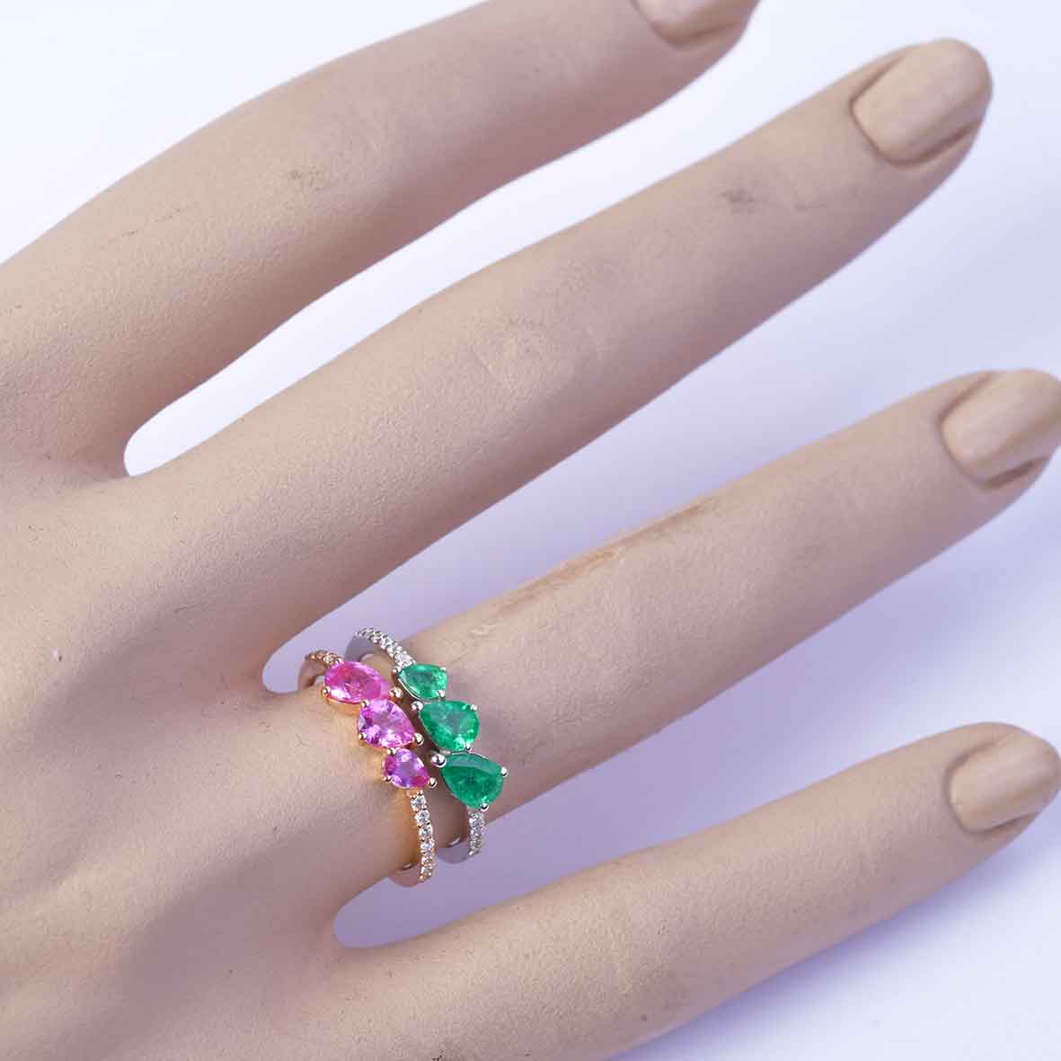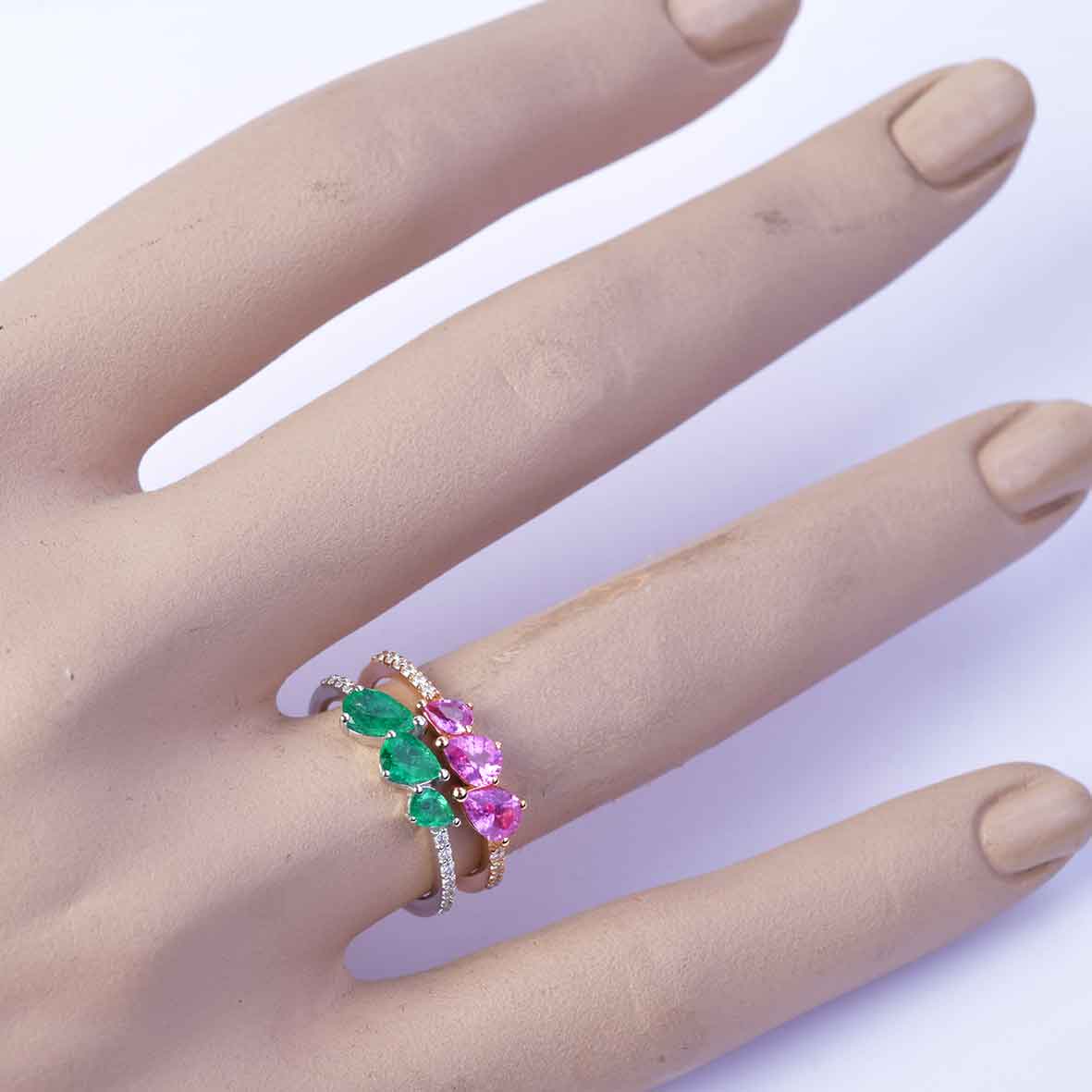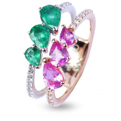 Bague Emeraudes Saphirs et Diamants en 2 Ors - AN3392BR/ZRSME