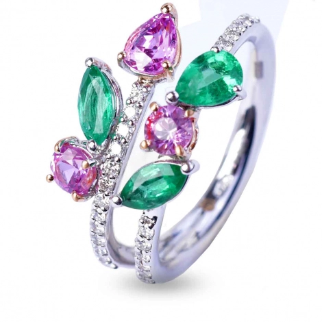 Bague Emeraudes Saphirs et Diamants en Or Blanc - AN3385BR/ZRSME
