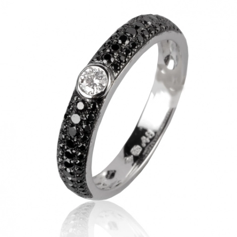 La bague est sertie de 0,48 carat de diamants noirs naturels.