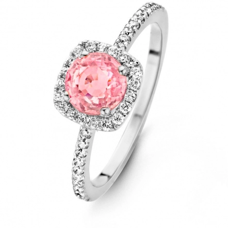 Bague saphir rose et diamants One More de la collection Salina portant la référence 053930XA Le saphir rose d'un poids de 1.11 ct est entourée de diamants. Le corps de bague est lui aussi serti de diamants. 34 diamants sertissent cette bague.
