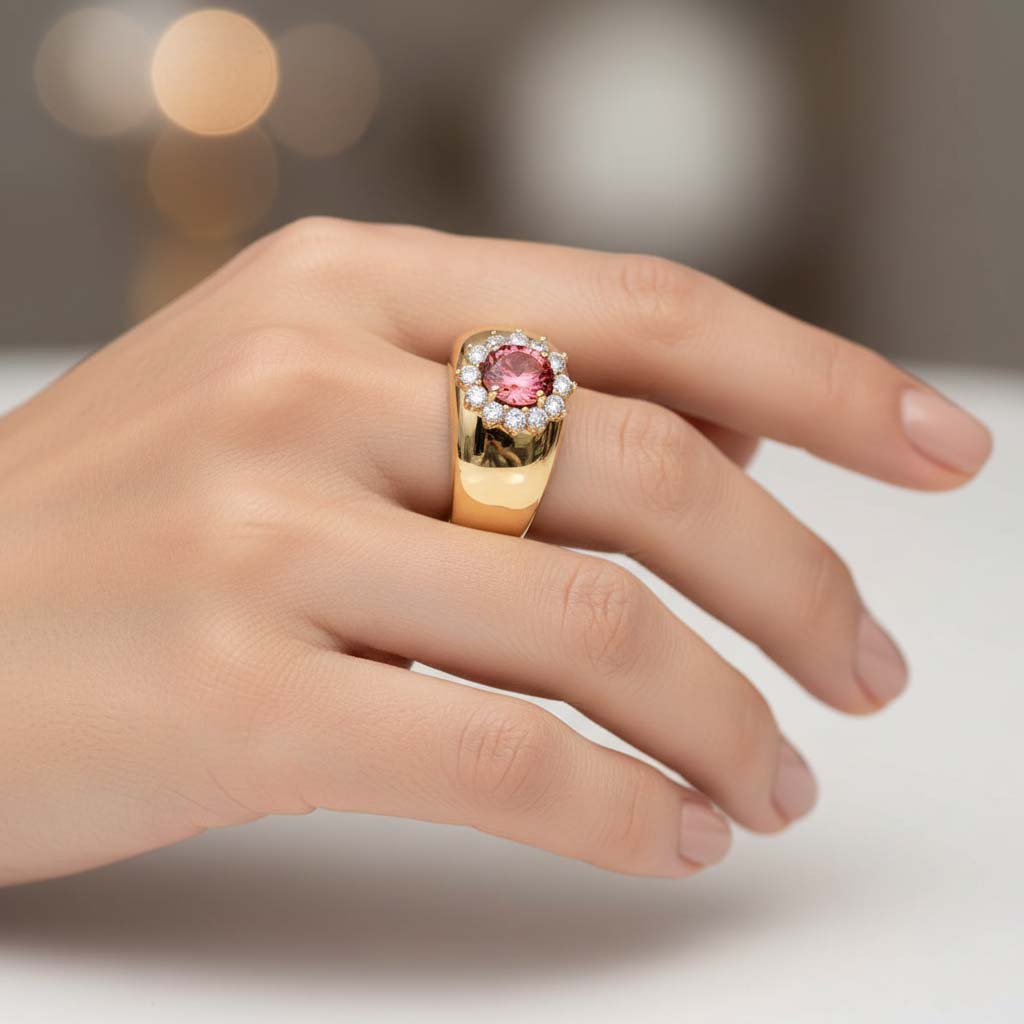 Bague Tourmaline Rose et Diamants en Or Jaune – Saya
