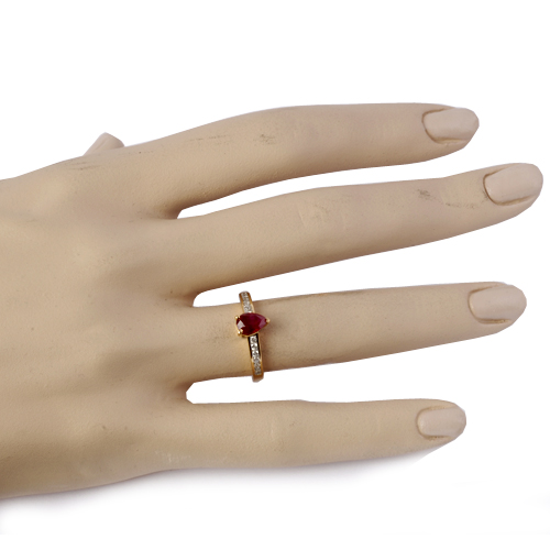 Découvrez la beauté intemporelle de cette bague rubis poire et diamants en or 18 carats, une création joaillière raffinée alliant éclat, finesse et passion.
