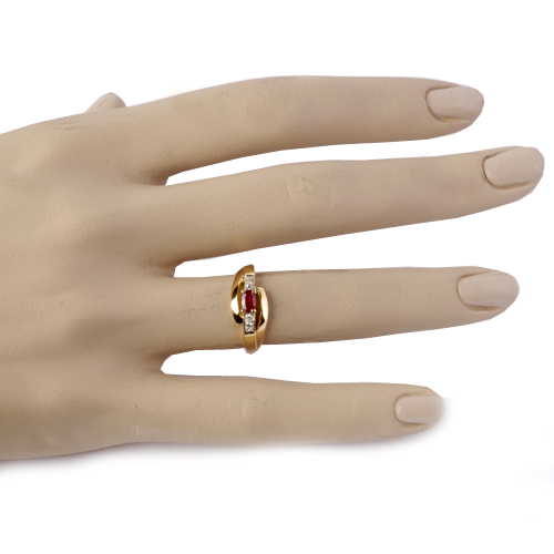 Découvrez la délicate bague rubis et diamants en or 18 carats, une création élégante qui allie la noblesse des pierres précieuses à un design raffiné.