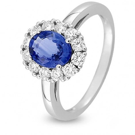 Un magnifique saphir ovale d'un poids de 1.50 carats est serti par 4 griffes.