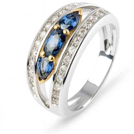 Bague Trilogie Saphirs et Diamants en Deux Ors 18 Carats