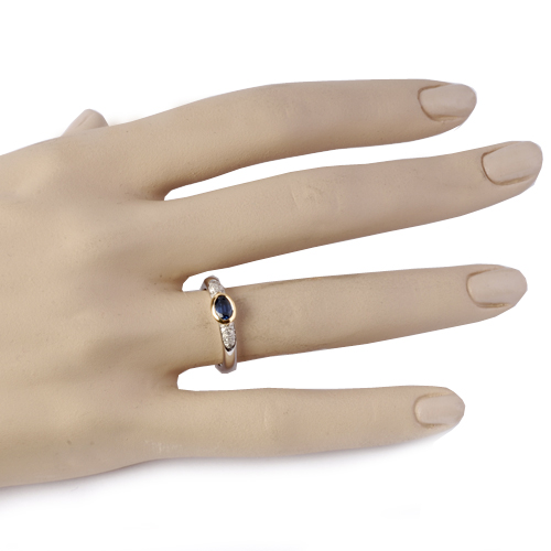 Le corps de la bague saphir est serti de diamants des deux côtés du saphir.