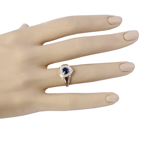 Le saphir est entouré de diamants ainsi que le corps de bague.