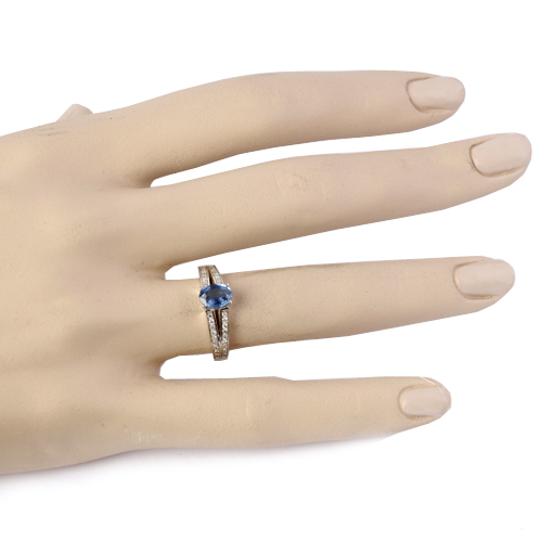 La bague saphir de forme ovale accompagnée d'un pavage double de diamants de chaque coté.