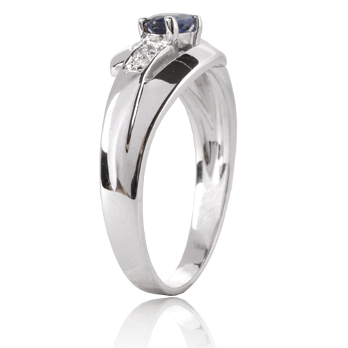 Un beau pavage de 0,06 carat épaule le saphir central de 0,30 carat.