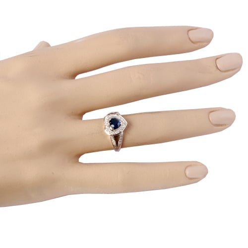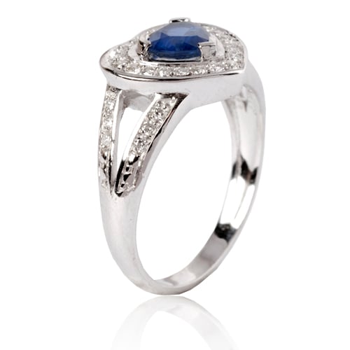 Cette bague saphir et diamants en forme de cœur est une véritable déclaration d’amour, alliant douceur et élégance.