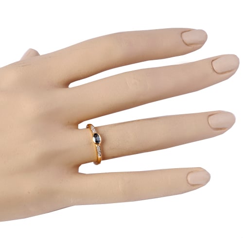 Le corps de la bague saphir est serti de diamants des deux côtés du saphir. Le poids des diamants est de 0.06 carat. La couleur des diamants est G (extra blanc).