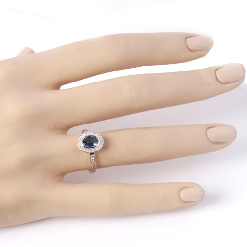 Son design harmonieux met en valeur l’intensité du saphir central, sublimé par l’éclat pur des diamants qui l’entourent.