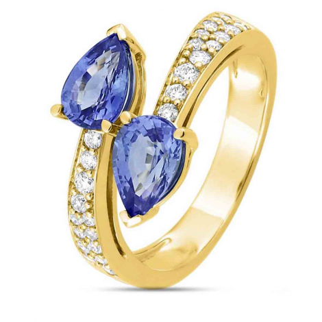 Cette bague toi et moi est originale avec ces deux saphirs en forme de poire qui sont sertis par 3 griffes.
