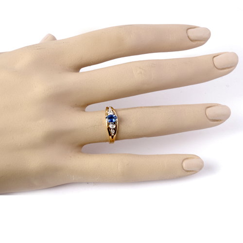 Le saphir est épaulé par deux diamants de chaque côté. 4 diamants pour un poids total de 0.09 ct.