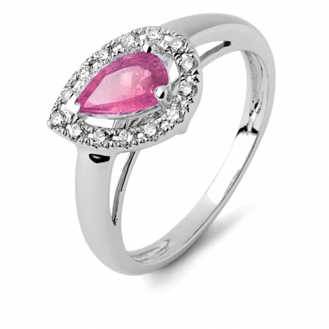 Bague saphir rose et diamant en Or Blanc Exquise -R9529