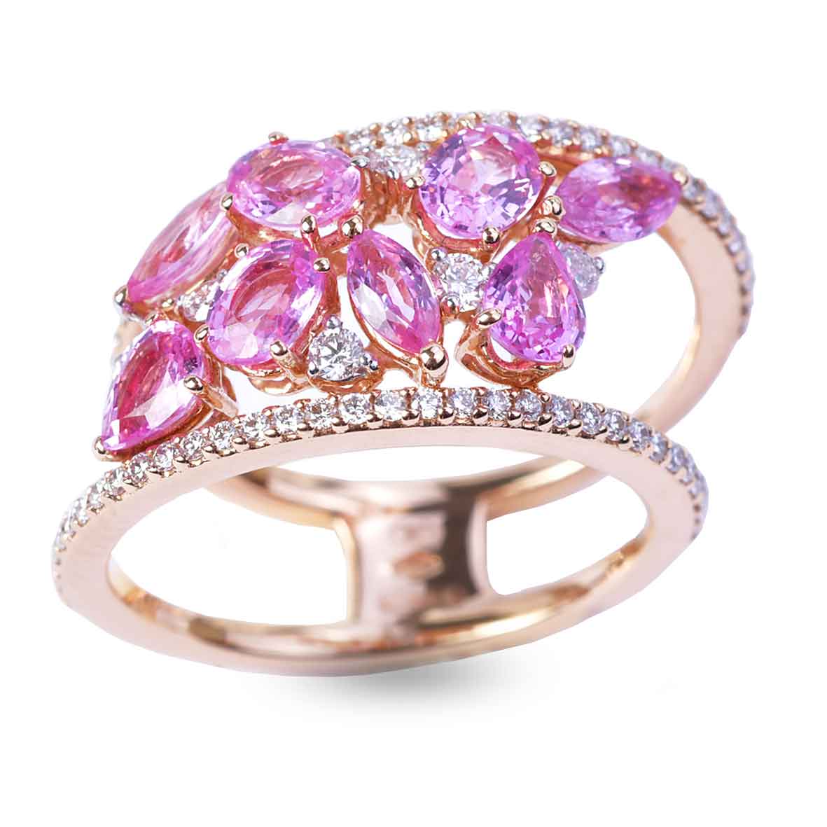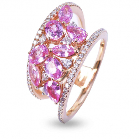 Bague Saphirs Roses et Diamants en Or Rose Noblesse -AN3059R/ZR