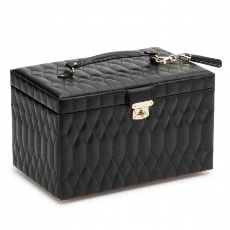 Chaque boîte à bijoux signée Wolf est conçue avec le plus grand soin, en associant des matériaux nobles – cuir véritable, velours doux, finitions laquées – et un agencement intérieur pensé pour accueillir colliers, bagues, bracelets, boucles d’oreilles ou montres avec une parfaite organisation.