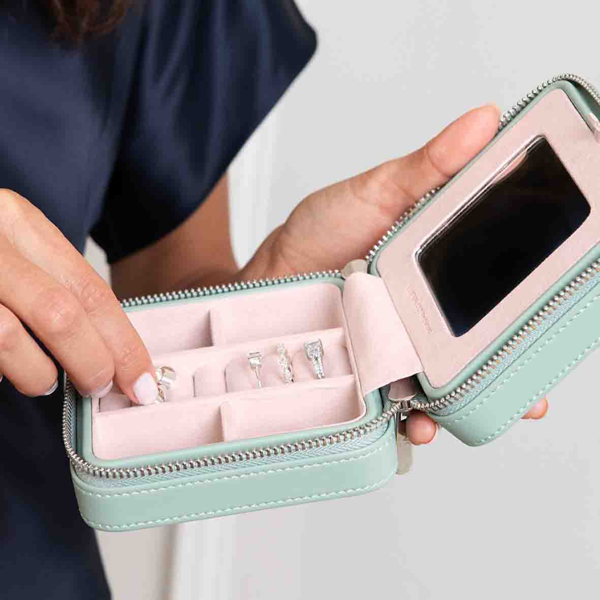 Boîte à Bijoux de Voyage Wolf 1834 - Wolf X Liberty Small Travel Jewellery Zip Case - Vert Pastel