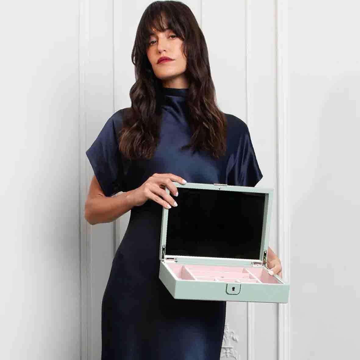 La boîte à bijoux Wolf 1834 arbore une teinte vert pastel sophistiquée, une couleur intemporelle et élégante qui s'adapte à tous les styles de décoration intérieure.