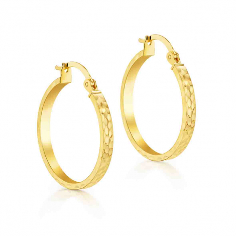 La finition diamantée de ces créoles or jaune crée un effet de scintillement subtil et élégant, ajoutant une dimension lumineuse à votre accessoire bijou.