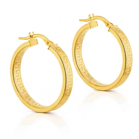 Boucles d'oreilles créoles motif grec en or 9 carats