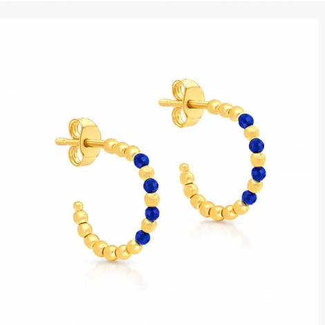 Boucles d'oreilles créoles ouvertes or jaune et spinelles bleus