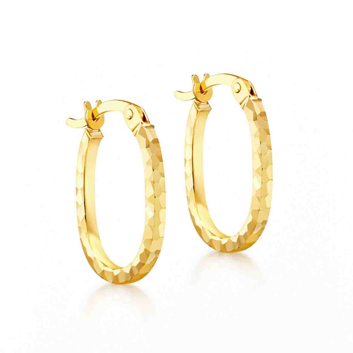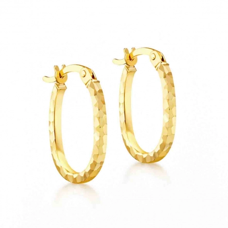 Ces créoles ovales bénéficient d'une finition texturée avec gravure diamant, créant un effet scintillant qui reflète magnifiquement la lumière.